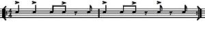 I have also been learning the Cascara rhythm which my friends say is very useful for understanding the placing of horn parts as well. The Cascara is also 2 bars long, with more syncopation. The arrows are accents, and this is something I am coming to now, as you play the rhythm you give more emphasis to the accents. Sometimes you can simplify the rhythm to just playing the accents. This could be done for example when the music is decrescendo (music is quieter) and one instrument or voice has a solo part. The rhythm section might want to simplify their beats in order not to crowd the singer or horn player.
